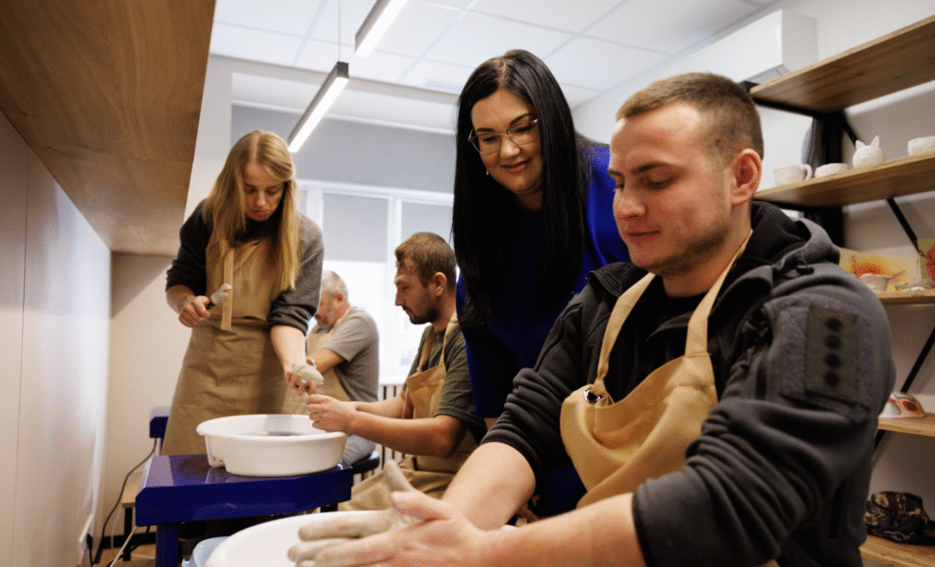 Особливістю Хмельницького центру став простір вільного самовираження з гончарною та артмайстернею. Арттерапія є одним із дієвих інструментів для відновлення — вона допомагає людині безпечно виразити емоції, прожити травматичний досвід і відновити внутрішню рівновагу через творчий процес.